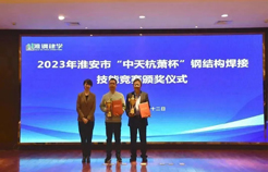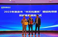 市市場監(jiān)督管理局特設處謝展處長宣讀了關于2023年淮安市“中天杭蕭杯”鋼結(jié)構(gòu)焊接技能競賽獲獎情況的決定,大會進行了頒獎儀式。